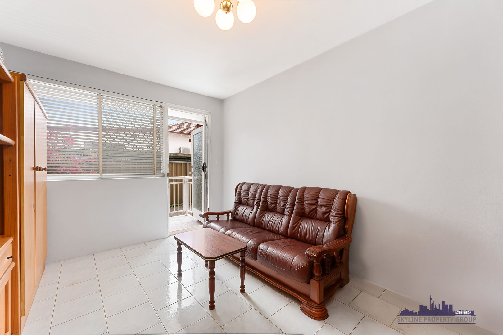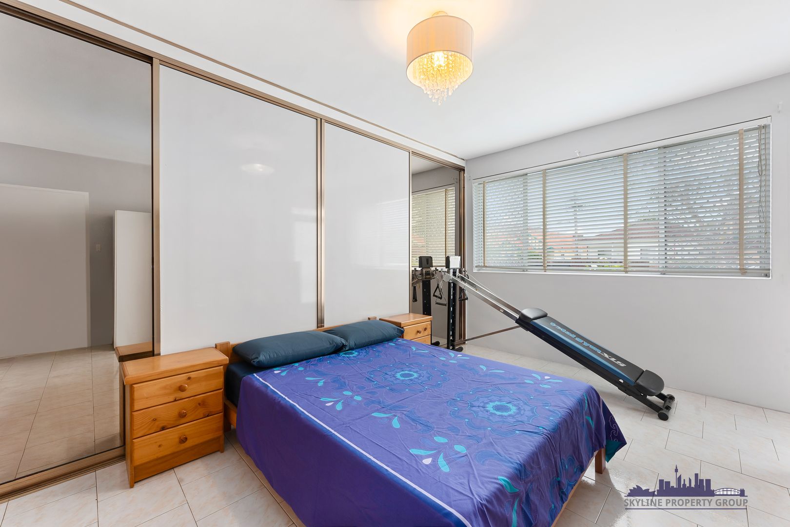 Both rooms are generously sized, with the main bedroom boasting a built-in wardrobe, access to a spacious balcony, and an exquisite crystal chandelier to elevate your everyday.