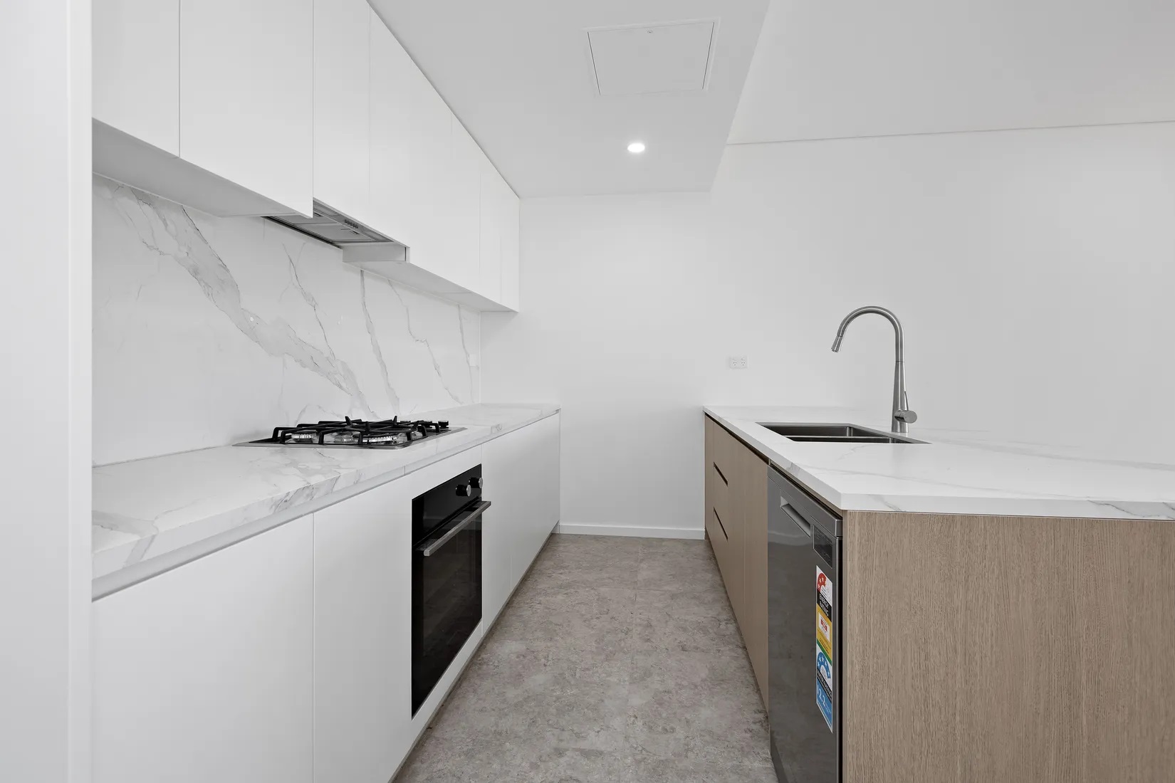 Designer Kitchen: Fitted with sleek stone benchtops, premium modern appliances, and gas cooking ideal for both everyday meals and gourmet creations.