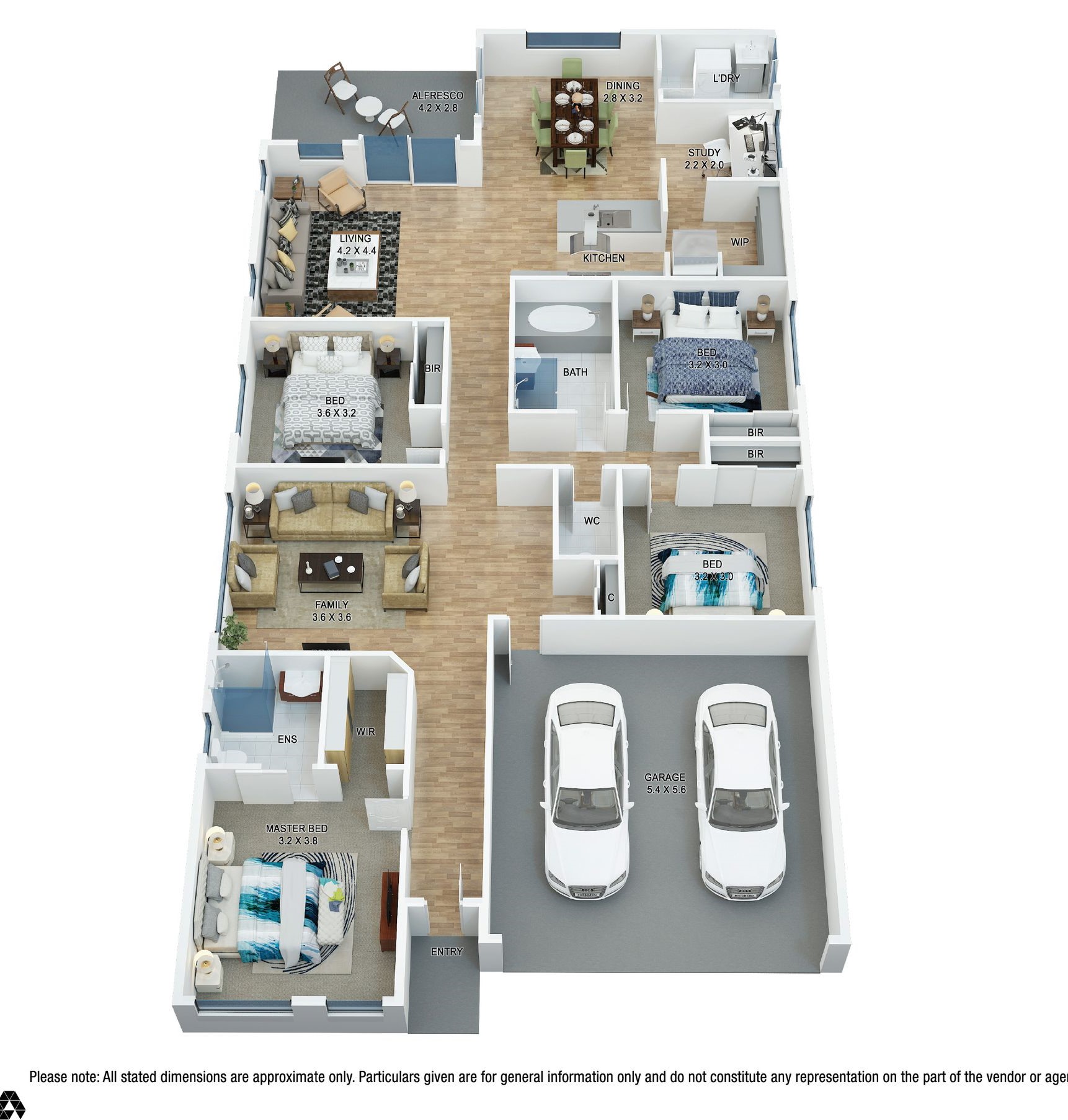 Land size: 375 m² Bedrooms: 4 Bathrooms: 2 Garages: 1 (2 auto)