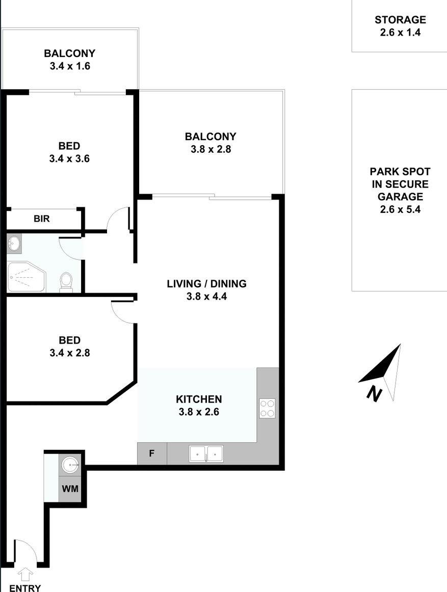 – Large Balcony accessible via living and bedroom