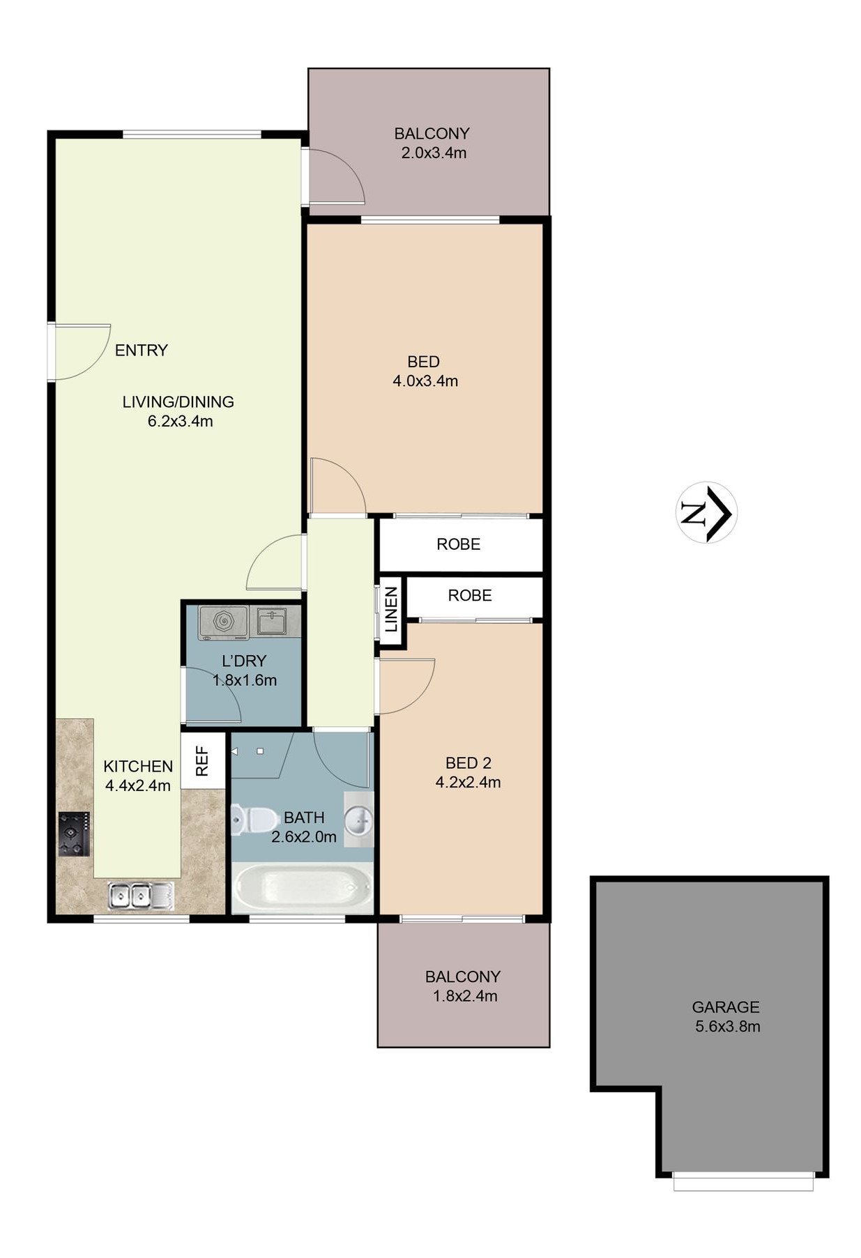 Land size: 2,286 m² Bedrooms: 2 Bathrooms: 1 Garages: 1 (1 auto)