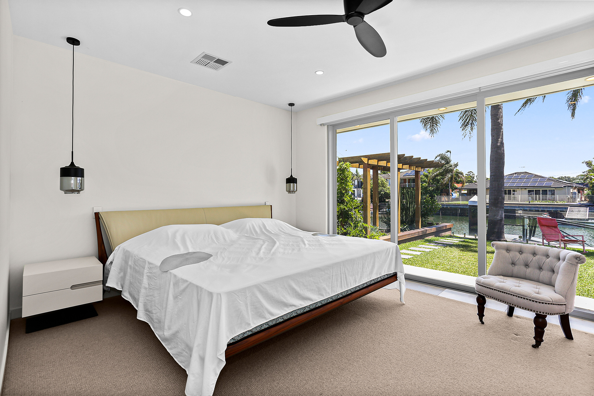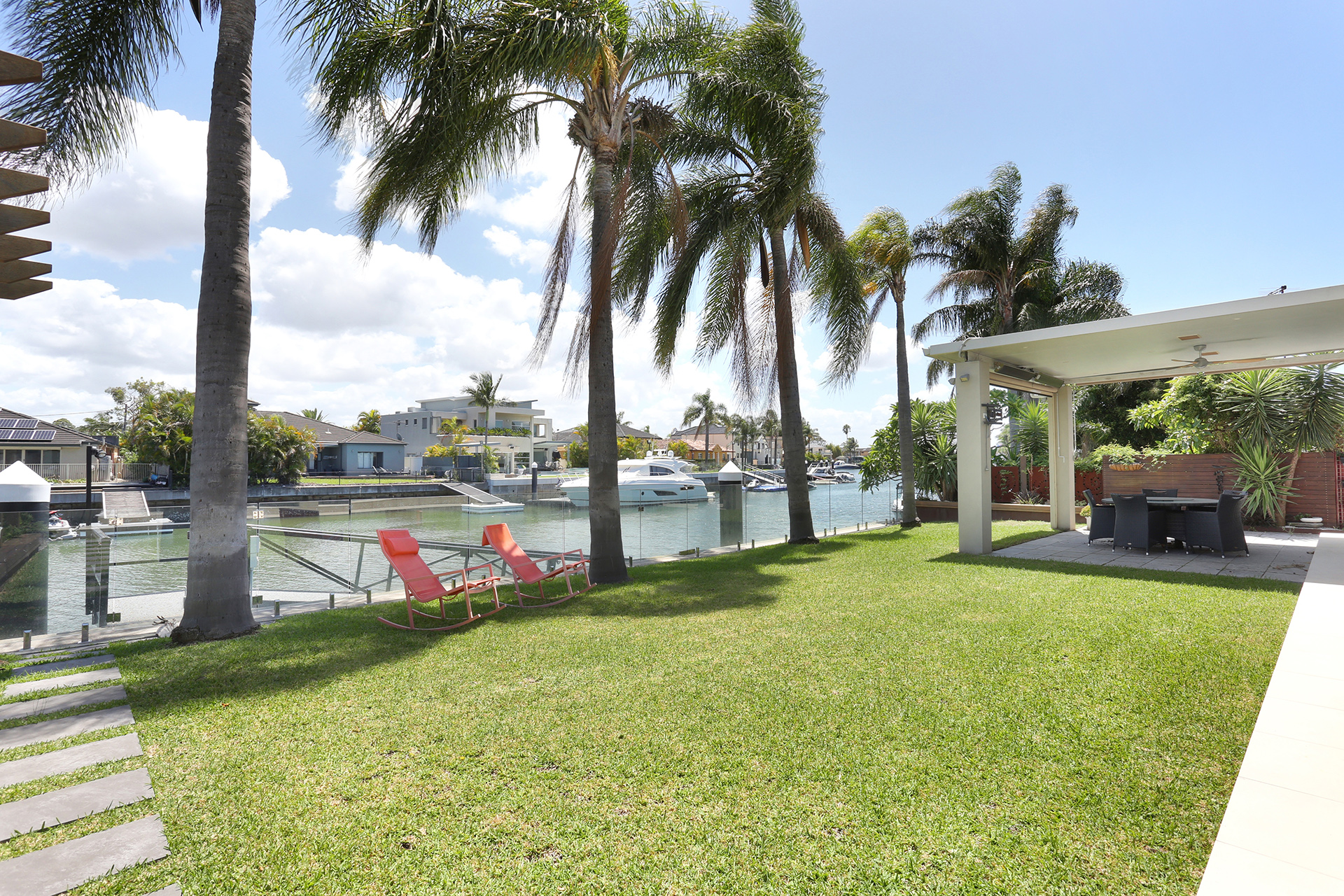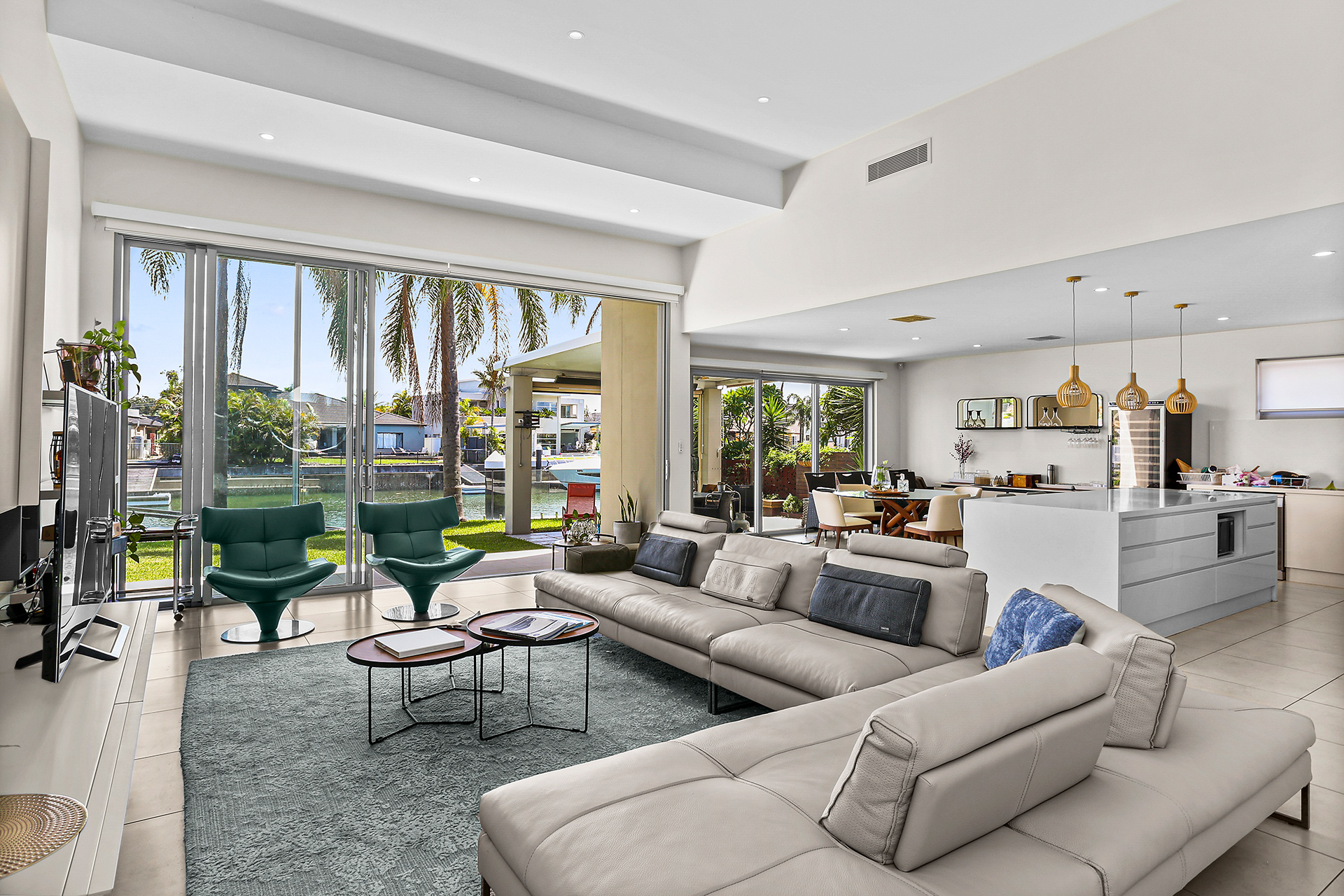 From the moment you step inside, you’ll be captivated by the soaring 4-metre high ceilings, expansive open-plan layout, and uninterrupted views of the beautifully manicured lawns and sparkling waterfront.