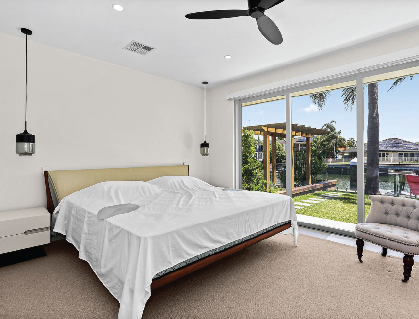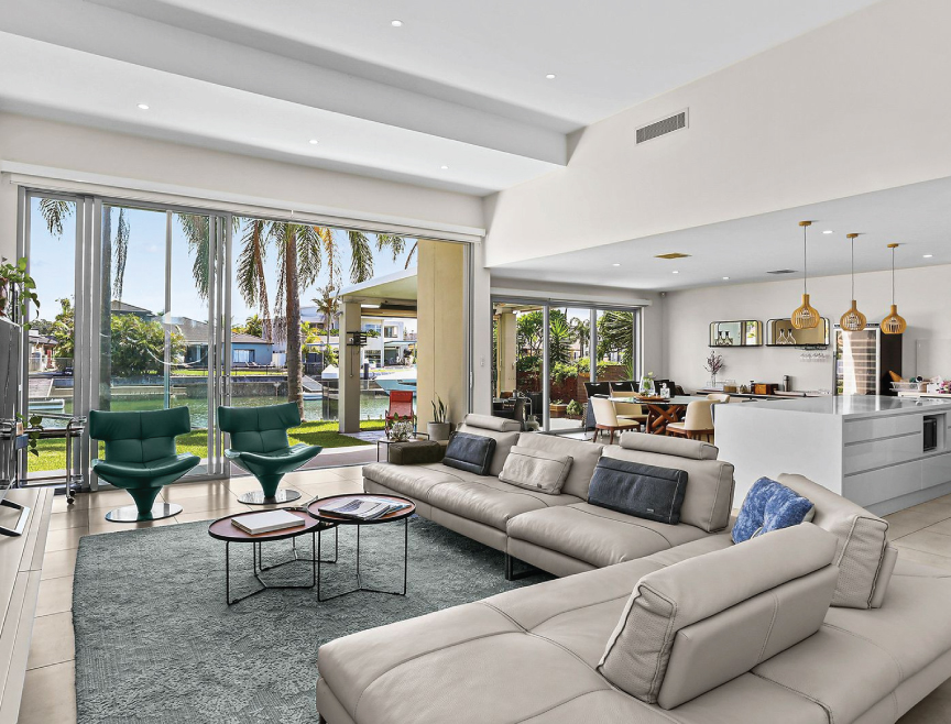 Spacious living room with 4m high ceilings, wide open plan living, kitchen and dining areas which have full view of the level established lawns and waterfront area with pontoon and Boat Dry Dock facilities, this loved home has a large entertainers kitchen with solid Island Bench, waterfall ends and state of the art appliances. An ideal family who wants to live the waterfront lifestyle.