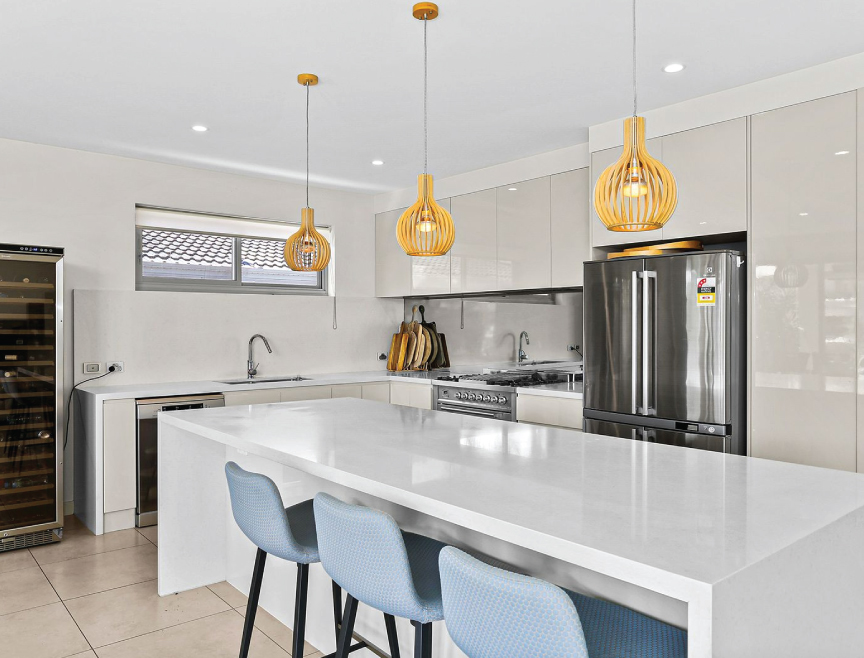 – Modern kitchen with solid 40mm stone bench-tops, Smeg gas cooking, and much more
