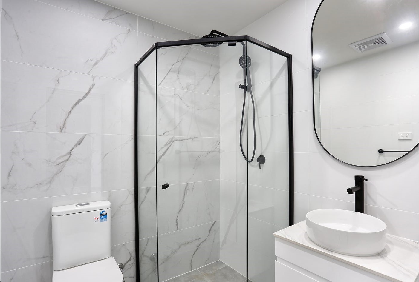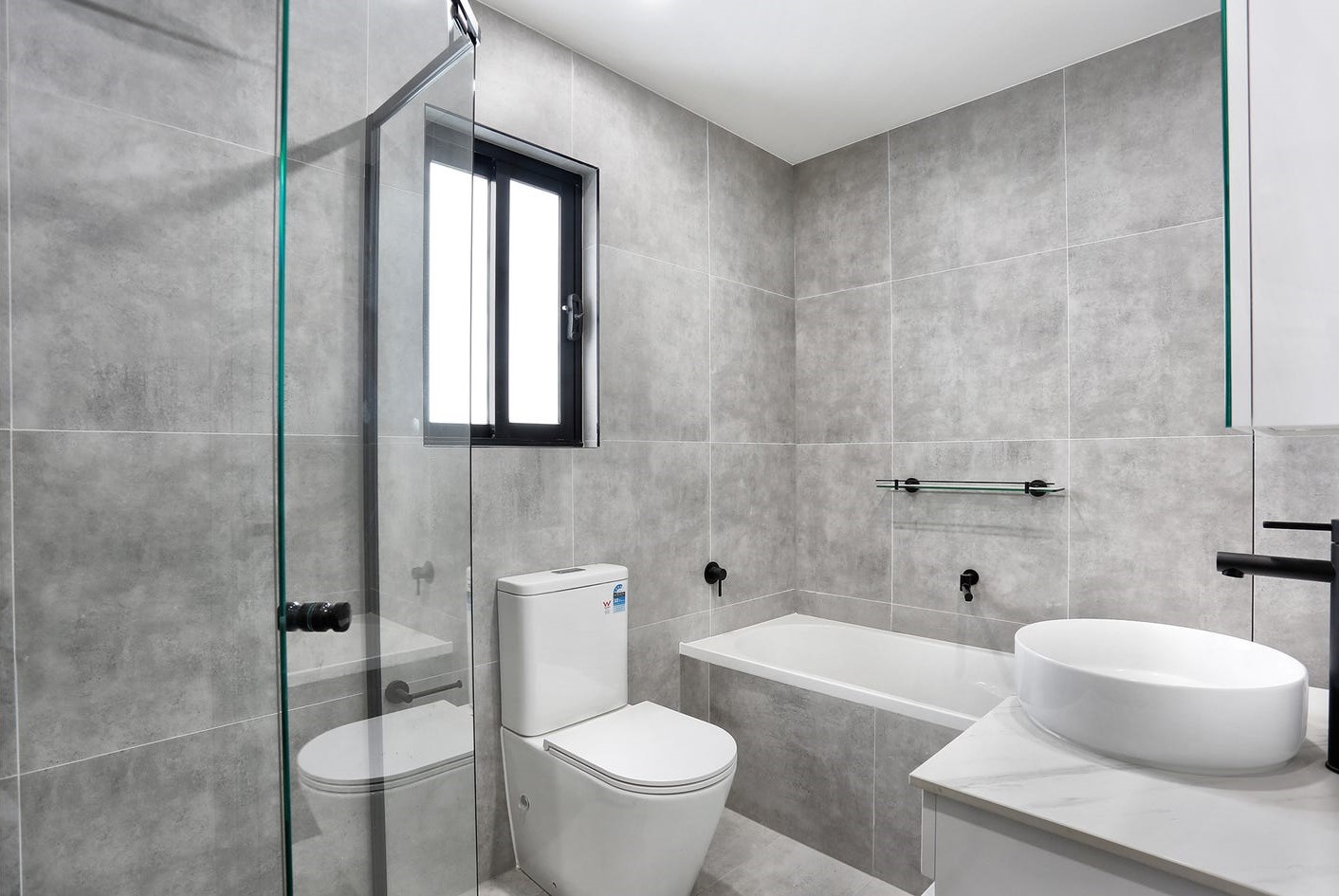 + Floor to ceiling tiled bathrooms with semi-frameless shower and bathtubs