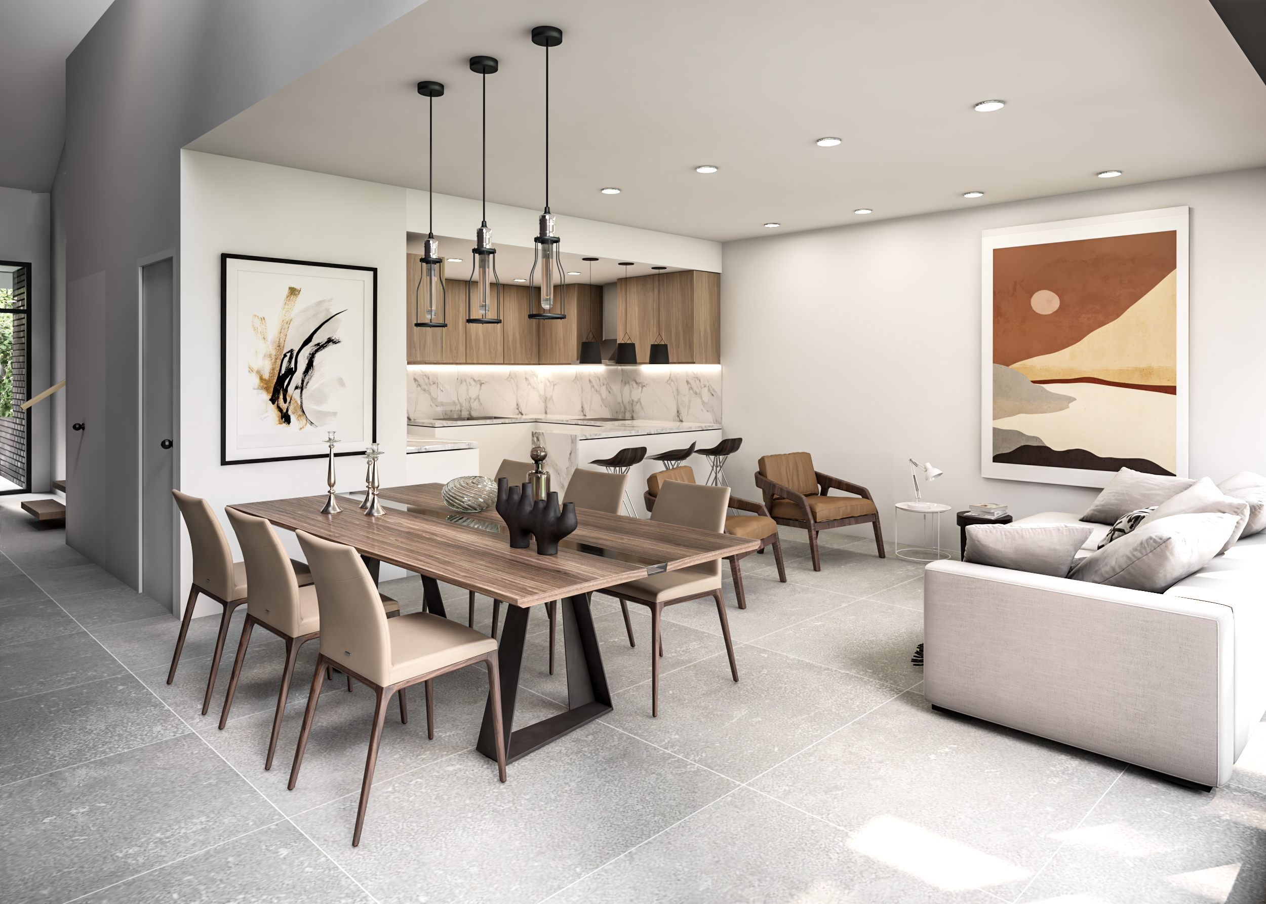 - Townhouses benefit from a northern orientation surrounded by architectural landscape and vegetation